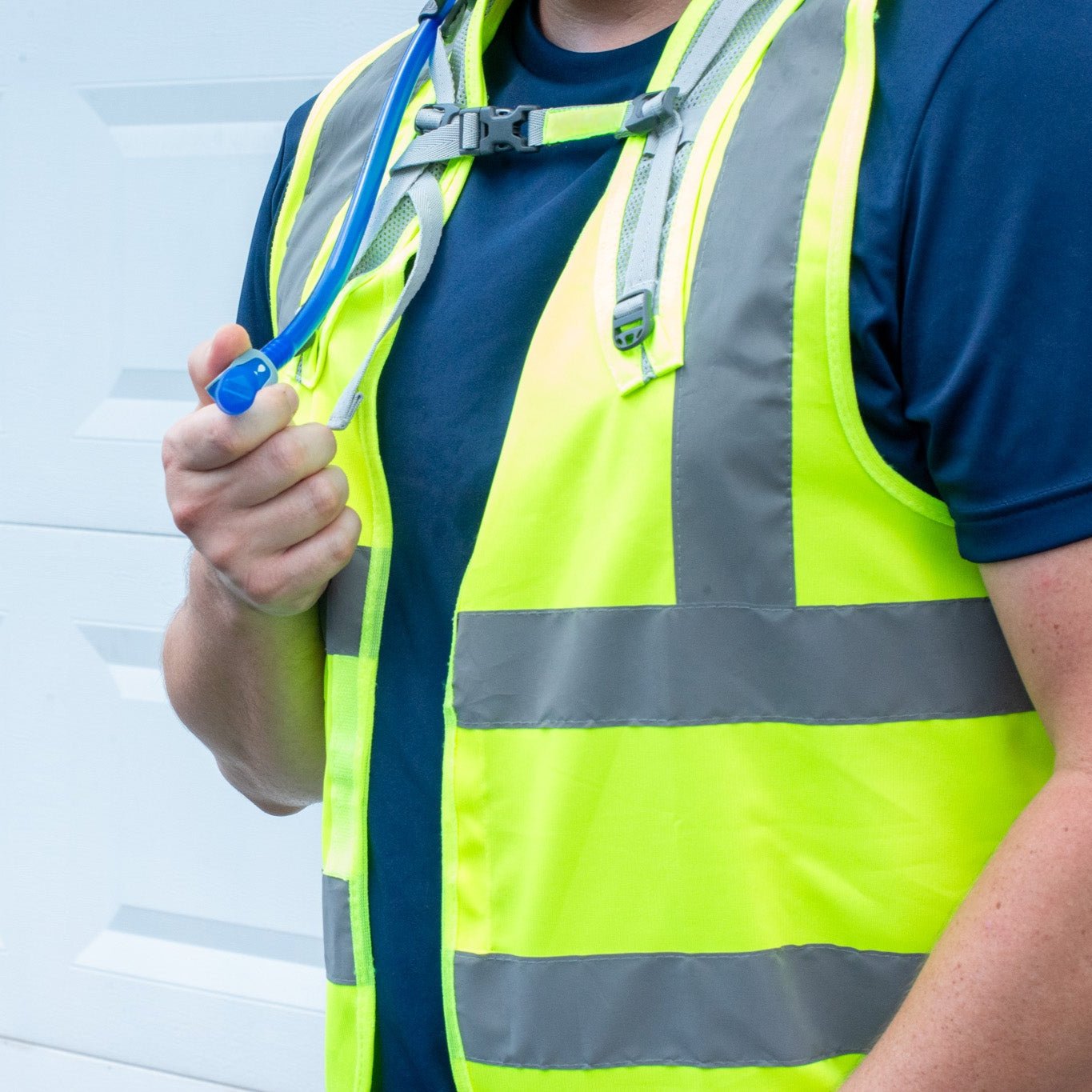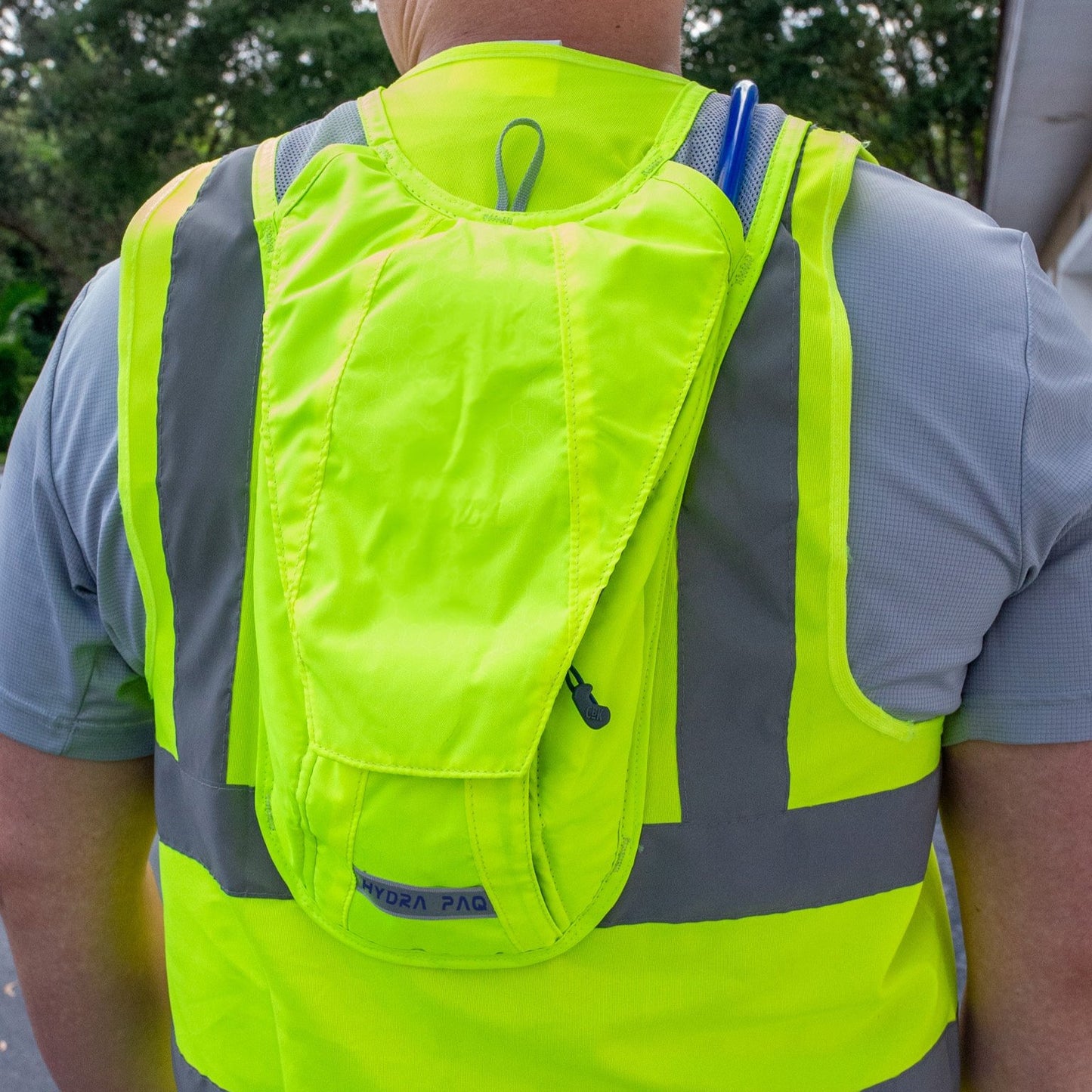 Our safety vest integrates a top-quality Hydra Paq, providing easy access to hydration without interfering with your tasks. The ergonomic design ensures that the water pack fits snugly and securely on your back, offering comfort and stability as you move.